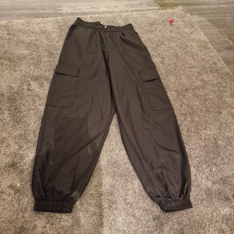 Kul bukse med strikk nederst på beina og mulighet for stramming i livet. Buksa har lommer på hver side av lårene.