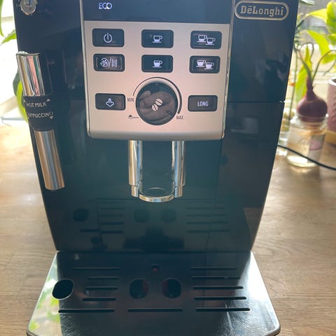 DeLonghi ECAM 23.210.SB espressomaskin i svart farge. Maskinen har flere funksjonsknapper for ulike kaffetyper, melkeskummer og justerbar koppstørrelse. Den er laget i materialer som gir et moderne og funksjonelt design. Passer for hjemmebruk.