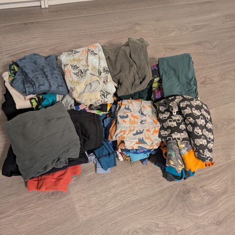 Fin klespakke med over 25 plagg. Tskjorter, gensere, skjorter, bukser , Fleece og litt ull. Merker som Bergans, GAP, Janus, Cubus osv..
