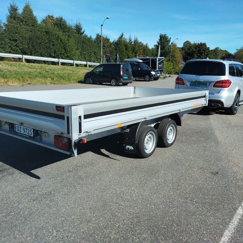 750kg- lasteeevne på 600kg. Kun bakre lem kan legges ned. Tregrind kan bare løftes rett av om ønskelig.