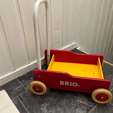 Gir vidare gåvogn som vi ikkje har brukt særleg då vi fekk ei ny. Denne var kjøpt brukt i 2025. Har klåre slitasjemerker men fungerar. Kan skru på hjula for å justere bremser. Hentast på Storhaug.