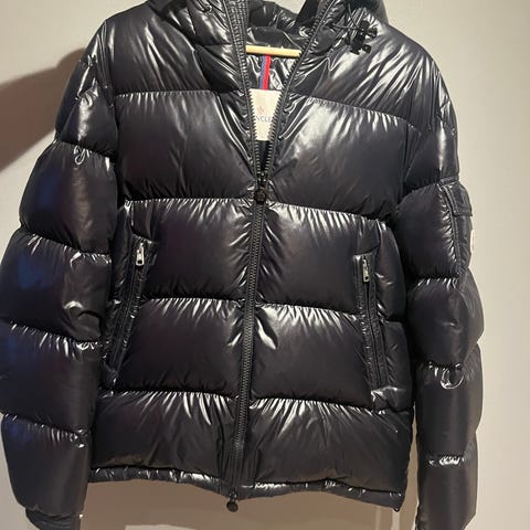 Moncler Vinterjakke i størrelse M/L, farge grå/sort, laget av dun. Jakken er designet for menn og egnet for kaldt vær. Selges grunnet feil størrelse og dermed aldri brukt. Åpen for bud ved rask avgjørelse.
