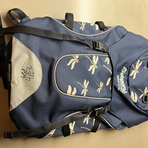 Mange gode minner fra turer sekken ble brukt, men på tide å gi den videre til et annet barn.