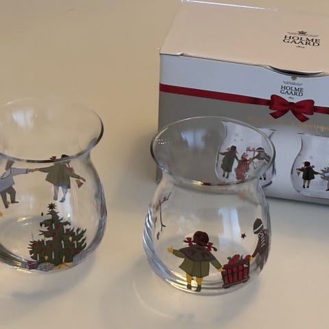 Holmegaard Julelyslykt i glass med dekorasjon