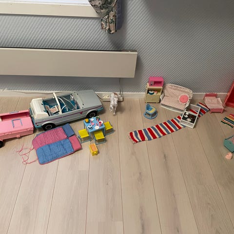 Barbie campingbil med tilbehør og 2 barbiedokker