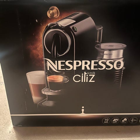 Nespresso kaffekapsler i en variert pakke med flere farger som indikerer ulike smaksvarianter. Pakken inneholder kapsler produsert i 2024 med best før dato i 2025. Kapslene er beregnet for bruk i Nespresso kaffemaskiner.