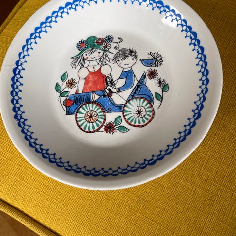 Barnetallerken fra Figgjo. Flat. Diameter 20 cm. Pris 100kr. Må hentes I Skotselv. Sender ikke.