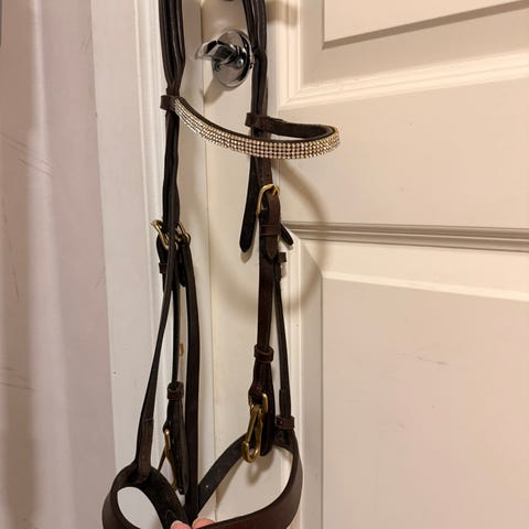 dette er et brunt hodeplagg i str cob. jeg selger det fordi jeg har fått meg annet hodelag som er mer tilpasset til min hest. pent brukt og ingen skader. HBO 350kr. kontakt meg for spørsmål😄