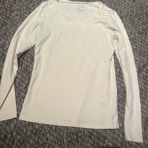 Genseren er pent brukt. Str. M. Brystmål fra armhule til armhule er 43 cm, og hel lengde fra skulder og ned er 59 cm. 48% bomull, 47% modal og 5% elastan.