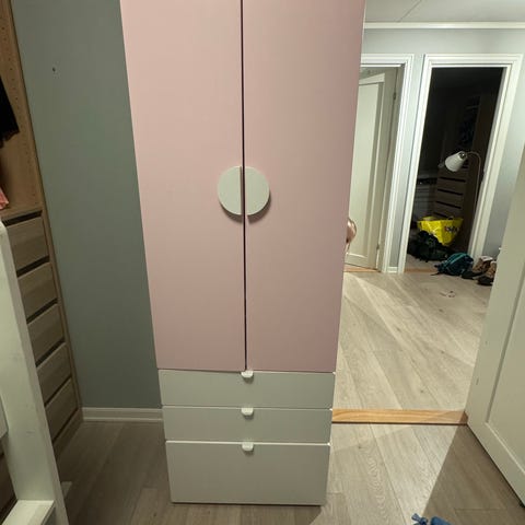 Selger et pent brukt garderobeskap for barn fra Ikea sitt Småstad-systemet. Skuffer x 3 på innsiden. Stang til oppheng.