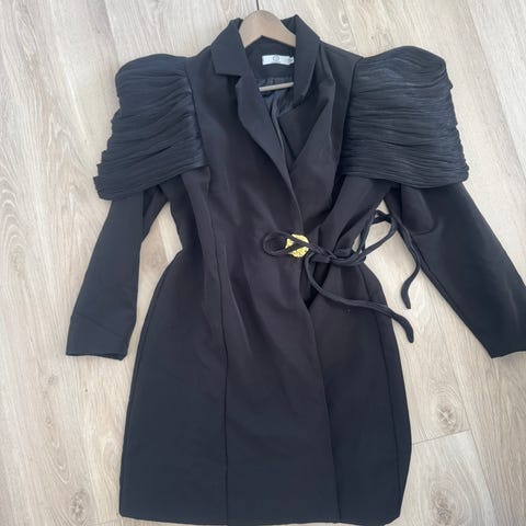 Lang dressjakke med ballongermer som også kan brukes som kjole.