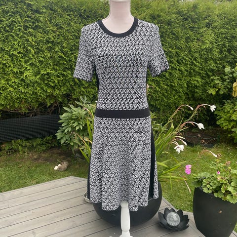 Tommy Hilfiger Hverdagskjole i størrelse S, grå farge og laget av bomull. Kjolen har hette og lange ermer med detaljer i rødt, hvitt og blått på mansjettene. Egnet som hverdagsplagg for kvinner.