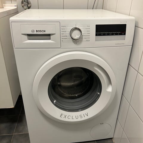 Bosch serie 4 Frontmatet vaskemaskin med hvit farge. Pent brukt, men sprekk i dør, se bilde. Alder ukjent, men trolig av litt eldre dato. Den fulgte med leilighet som ble kjøpt i november 2025. Har brukt den siden innflytting, og funker som den skal p.t.