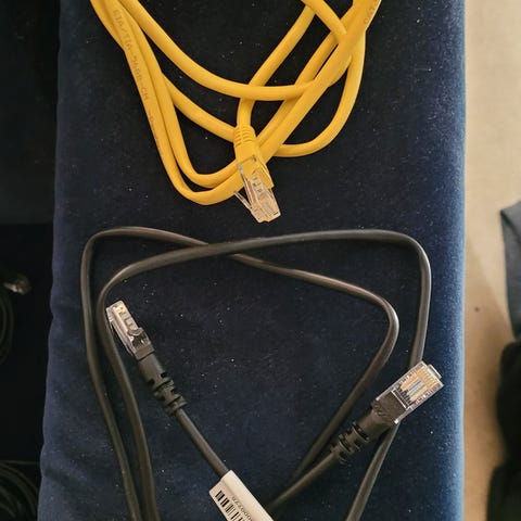 9 stk forskjellige CAT5 nettverkskabler.