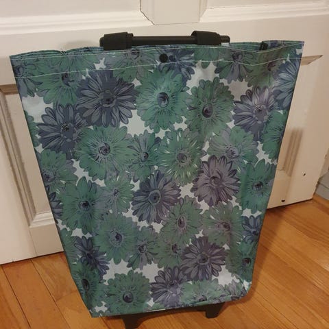 Bag som kan bæres eller trilles. Stort godt rom. Brukt få ganger