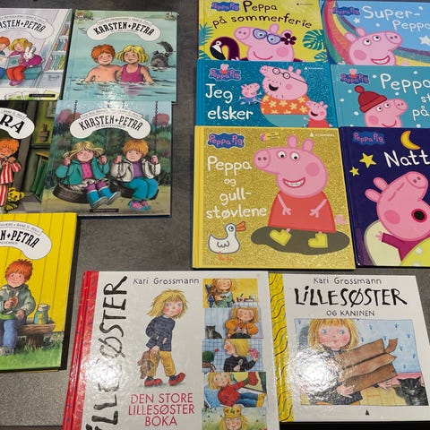 Alle bøkene er pent brukt, men posten i Peppa gris-boka er åpnet og lekt en del med.