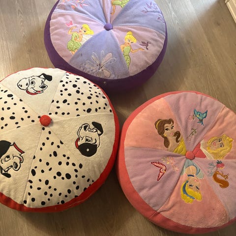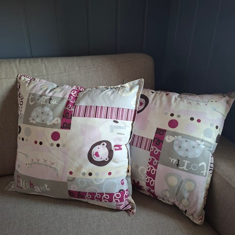 4 stk puter med trekk selges samlet. Bruk på barnerom og fremstår som nye. Str: 40x40.