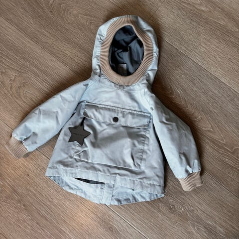 Jakke fra Mini A Ture. Refleksen har dessverre falt av. Ellers i fin stand med masse bruk igjen.