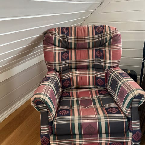 Stolen er brukt, men har mye bruk igjen. Stolen er god å sitte i og er fin sammen med sofagrupper eller alene. Trekkene kan tas av og vaskes.