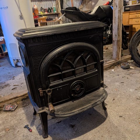 Hel og fin ovn. Ikke rentbrennende. Overgang rør fra 170 til 150 følger med . Må hentes. Ta med bærehjelp. Er i bruk enda.