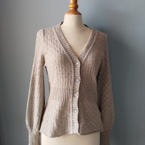 Fin kjole med belte i samme farge. Materialet har mønster men er grått. Fin kjole som rekker til knærne (jeg er 176).