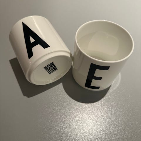 Design Letters kopp med bokstaven S i svart på hvit keramikk. Passer til daglig bruk som drikkekopp eller til oppbevaring av små gjenstander. Som ny.