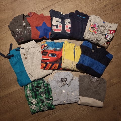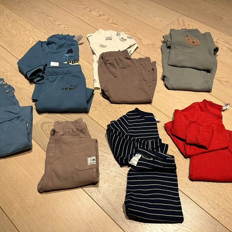 Selger en pose med brukte gutteklær, hovedsaklig i str 86-92.