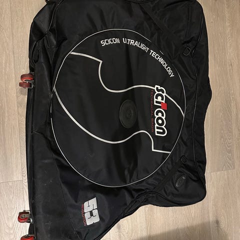 Scicon Aerotech Evolution X kjøpt ny sommer 2022 og brukt på en kun en flytur sommer 2022. Alt er i orden med sykkel kofferten, låser, hjul etc.