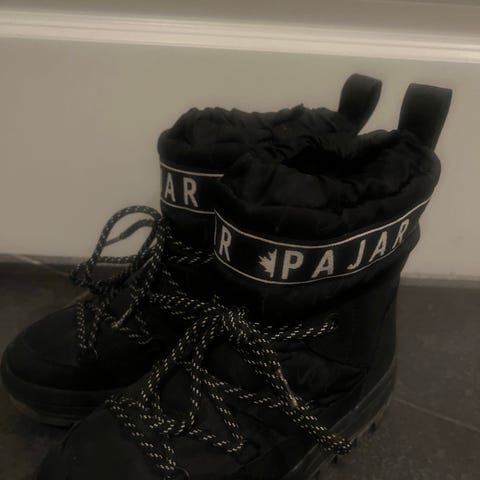 Helt nye sko selges. Dessverre for små til meg, som er et sted mellom 39 og 40. Disse skoene er veldig fine og varme, men passer nok best en med str 38/smal 39 hvis det skal være plass til gode sokker inni.