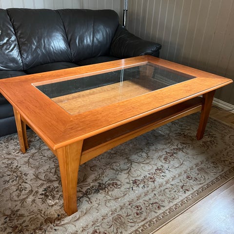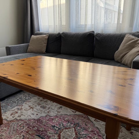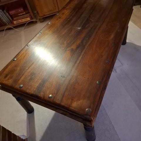 Bordet er i stand, men overflate er falmet av sola. Trenger en puss og litt olje/lakk