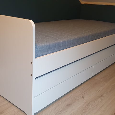 Seng med underseng og 2 skuffer selges. Selges med en madrass. Madrassmål på begge sengene er 90x200cm. Pent brukt av ett barn.