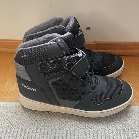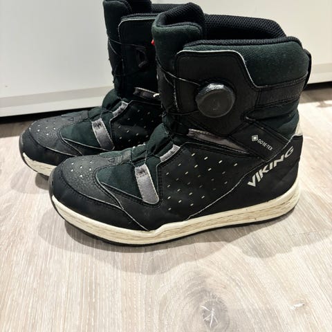 Selger Viking Gore-Tex barnesko, modell Urban Outdoor, i størrelse 30. Skoene er kun brukt én gang og fremstår som nesten nye. De er svarte og har både borrelås og snøresystem som gir god tilpasning og støtte. Vanntette og pustende, godt egnet for barn og passer til ulike utendørsaktiviteter.