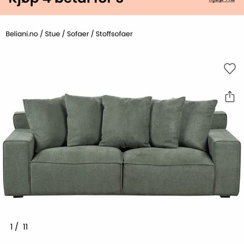 Selges rimelig da ene sømmen i ene puten er løsnet(se bilde) Er ikke veldig synlig. Veldig god sofa og sitte og ligge på. Kjøpt hos sleepo for ett par månder siden