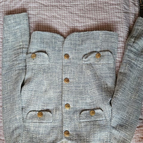 Lucy vintage style kort jakker i flerfarget med unik design, størrelse M eller L for kvinner.