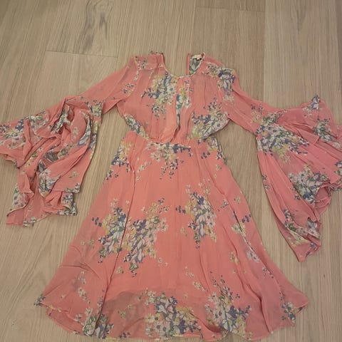 byTiMo Sommerkjole i størrelse XS, flerfarget mønster, laget av bomull. Kjolen har kort erme og en løs, flytende passform, egnet for sommerbruk.