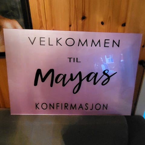 Selger et stilig og humoristisk skilt fra BC Design (Børshagen / Børscompagniet). Skiltet er laget i frostet glass med sort tekst og en tynn, elegant sort ramme.