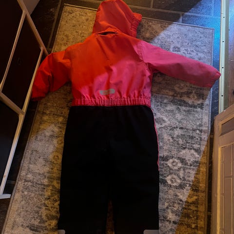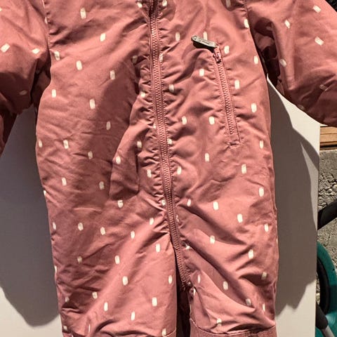 Den må sys mellom bena, se bilde. Ellers er dressen i god stand.