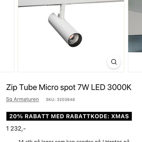 Leveres med integrert LED, 3 meter kabel og Zip skinne-adapter