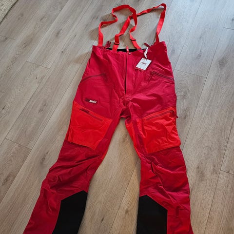 Brukt 1 gang på skitur. En flekk bak på høgre ben. (Se bilde) Buksen har en kombinasjon av hvit og blå farge.
