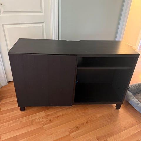 Selger pent brukt bestå skap. Dette mangler hyller i skapet oppe og nede men er en i midten. Døren oppe har grå ramme. Selges for 400kr. Innholdet følger ikke med