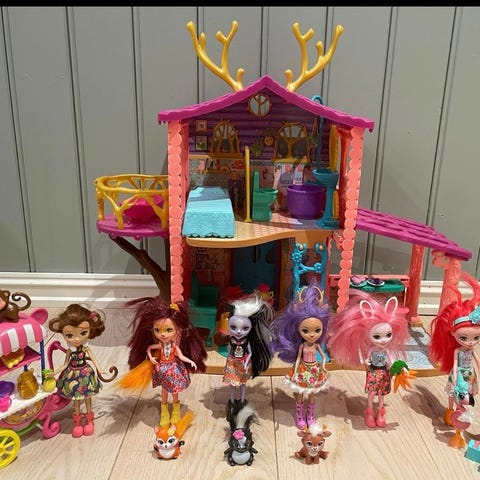 9 Party Pop Teenies dukker med tilbehør og eget festlokale 🎉 Møbler, mat, klistremerker, konfetti, accessoirer og oppbevaringingsesker følger med. Pent brukt og klart for mer lek!