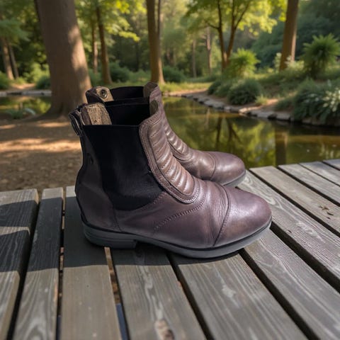 Horze Chelsea boots i svart skinn for dame, størrelse 34. Støvlene har elastiske sider for enkel på- og avkledning og en solid gummisåle.