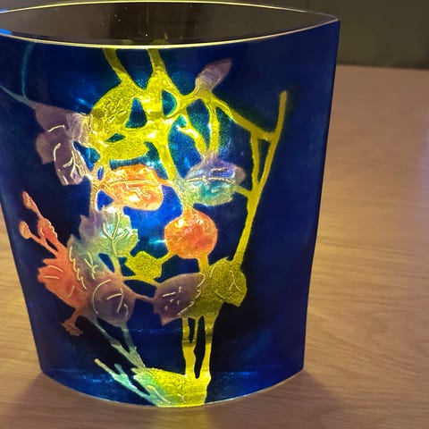 Ikke synlig brukt salt- telysestake selges. Tung.