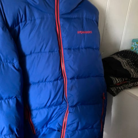 Parkas i størrelse S for herre eller L kvinner. Jakken er svart og laget av polyester. Designet for utendørs bruk men ikke minusgrader. God of varm brukt 1-2x. Kjøpt for russetiden.
