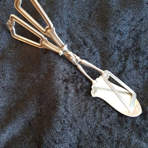 En vintageklips vil bli et spesielt bestikk for servering av smørbrød, kaker og andre bakevarer til gjester. Lengde 21 cm.