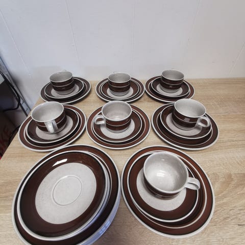 8 sett kopp/skål Karin fra Stavanger flint. Diameter kopp 8,5 cm. 40,- pr stk. 290,- for alle. Sender post. Har asjetter ute også.