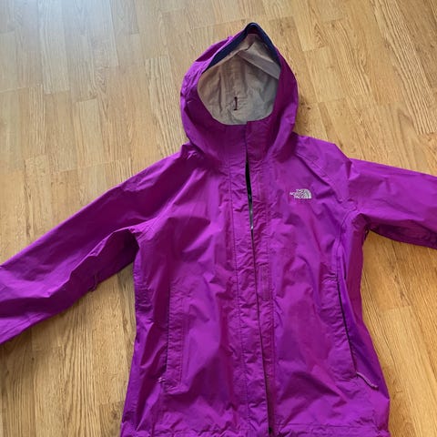 The North Face Summit Series regntøy i lilla farge, størrelse M for damer. Laget av Gore-Tex materiale som gir vanntett og pustende beskyttelse. Passer til utendørsaktiviteter under våte forhold.
