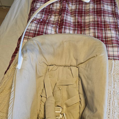 Stokke Tripp Trapp Newborn Set selges, dette er en utgått modell, men skal passe til nyere stoler. Seler og lekebeøyle medfølger.