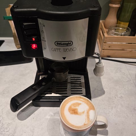 Jeg har dog opplevd at mekanismen inni maskinen for å flytte gruten etter at bønnene er kvernet og presset ikke fungerer helt som den skal. Selges derfor billig, og kan være et prosjekt for evt. interesserte. Dog, maskinen fungerer i den forstand i å lage en kopp kaffe.