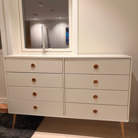 Ganske fine skyvedører som fungerer bra med 2 hyller.
